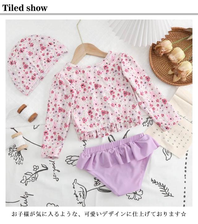 花柄 水着 キッズ水着 女の子 子供水着 ベビー水着 ガールズ セパレート 3点セット キッズ こども 水着 フィットネス 子ども服 タンキニ 女児 みずぎ キャップ付き スイムウェア UV対策 日焼け防止
