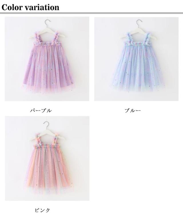 | 【73〜130cm】【全3色】【キラキラ】 ふんわりシルエットが可愛いチュールワンピース♪ ちょっとしたお出かけはもちろん 結婚式 ・パーティー ・お呼ばれ・ 誕生日 ・ 発表会 ・ 記念フォト etc. 特別な日のとっておきの オシャレ に大活躍! シンプルかつ上品なデザインだから出産祝い・お孫さんなどへの プレゼント にも喜ばれます! カットソーを合わせれば普段使いにも、肩紐を内側にしまってスカートとしても使える万能なワンピース! | |