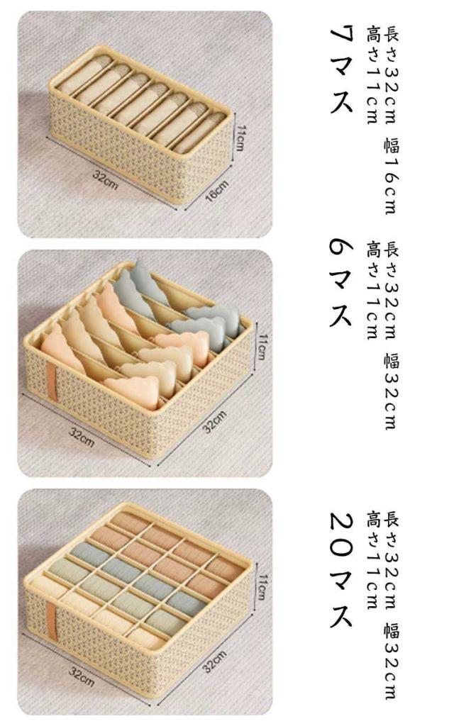 | 下着収納にもう困らない仕切り付き下着収納ケース3点セット 7マス・6マス・20マスの3点セットだから様々なサイズに対応できる。 入れるだけで整理整頓。男女ともに下着からトップレスまで様々な衣類に対応。 ゴチャゴチャしがちな引き出しの下着類をすっきり整理できる下着収納ケース。 一見紛らわしい下着の収納場所が一目瞭然でわかり、サッと収納、パッと取り出し!ランジェリー収納が楽しくなります! 使わないときは畳めるので場所も取りません。 | |