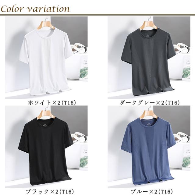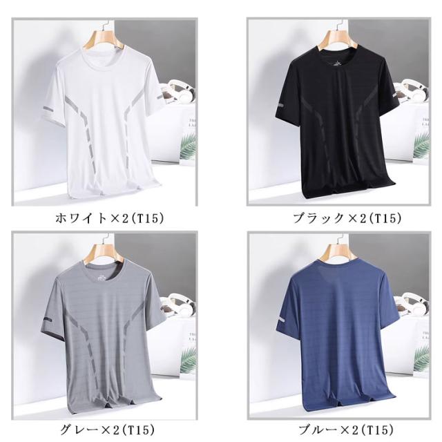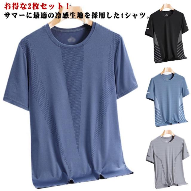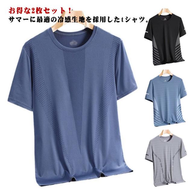 トップス スポーツ 2枚セット 男性用 夏服 男性用 tシャツ 半袖Tシャツ カットソー 通気性 アイスシルク クール 伸縮性 涼しい トレーニングウェア 大きいサイズ 春夏 スポーツ シンプル 快適 運動 テニス