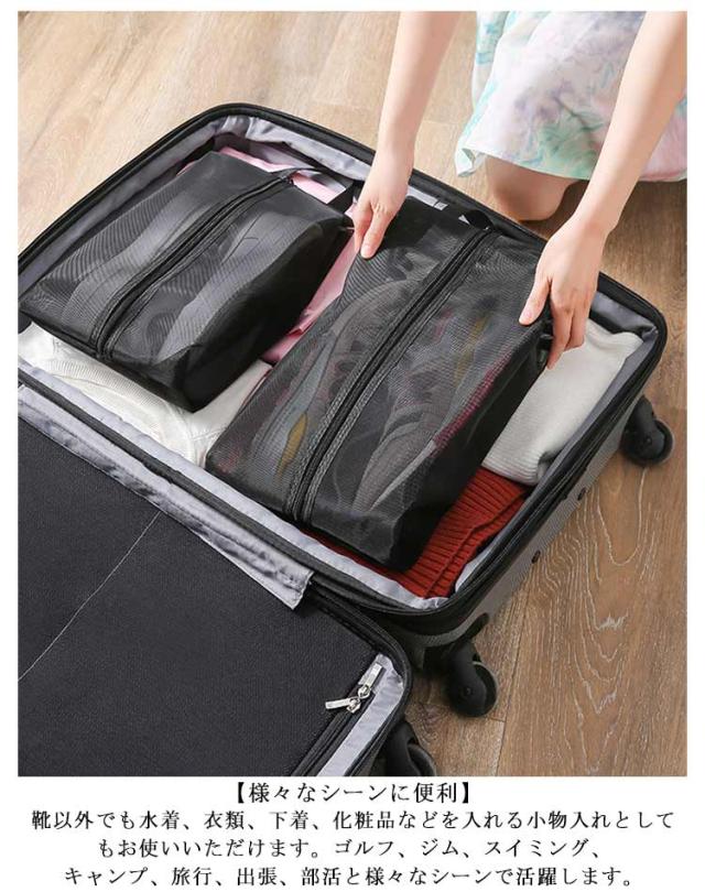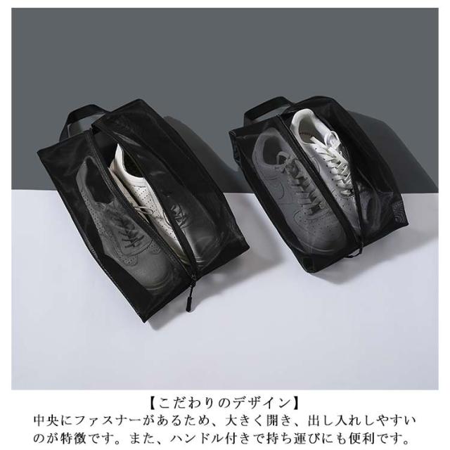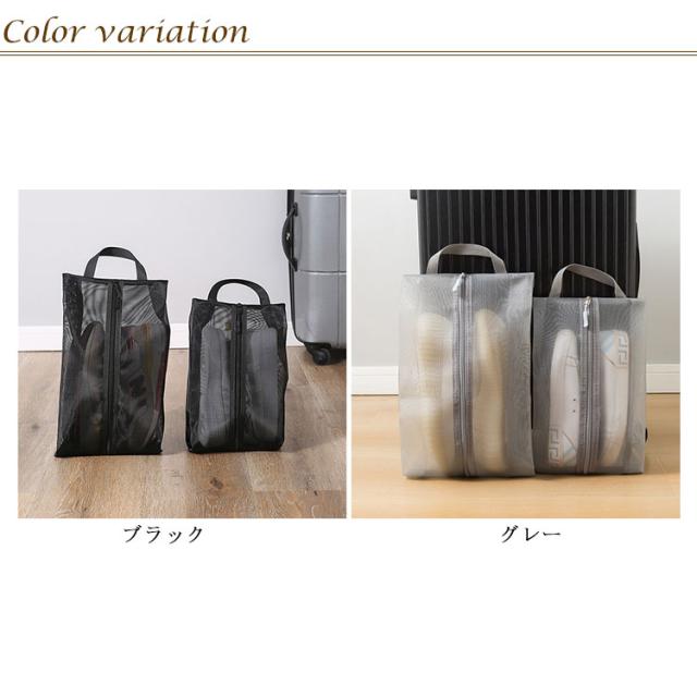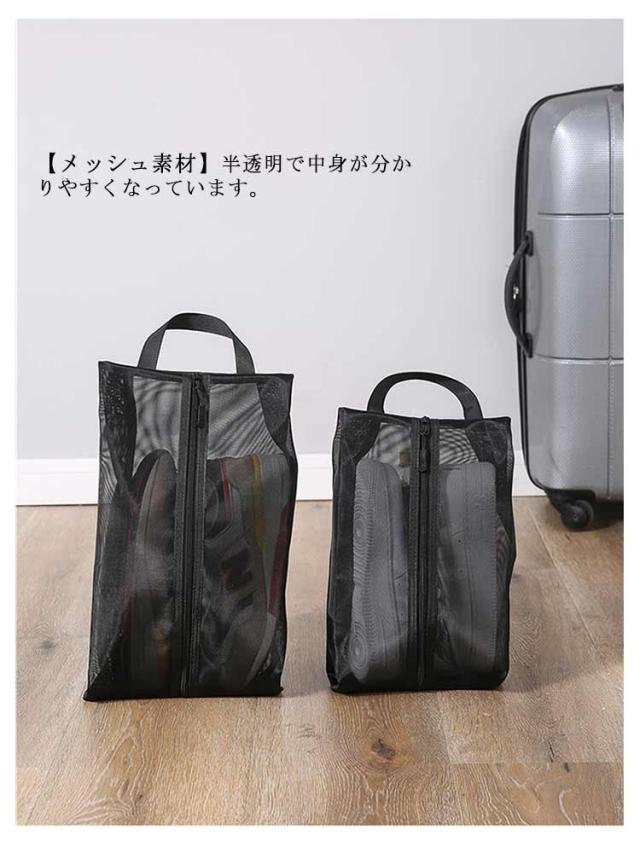 2個セット メッシュ シューズケース シューズバッグ シューズ入れ 大 小 シューズ袋 通気性 靴 くつ 小物 旅行 出張 収納 防塵 ファスナー トラベル ポーチ 学校 靴袋 上履き入れ 収納 スポーツ プール ゴルフ サッカー 野球