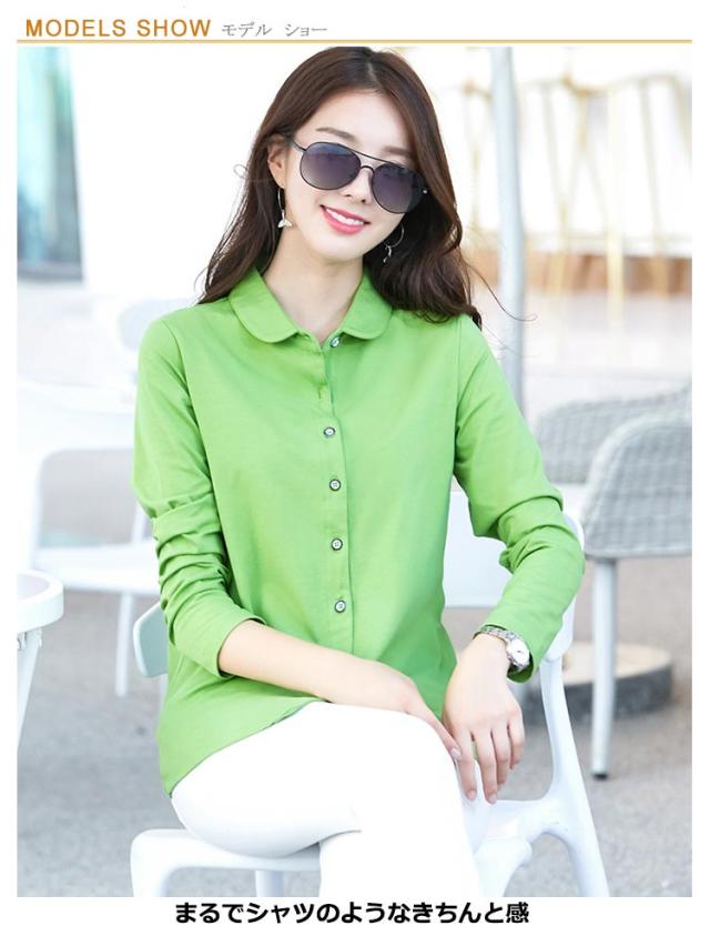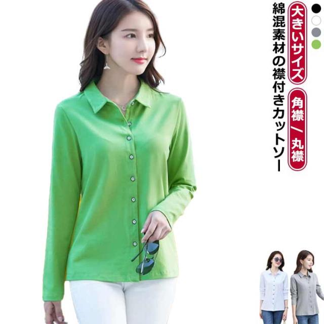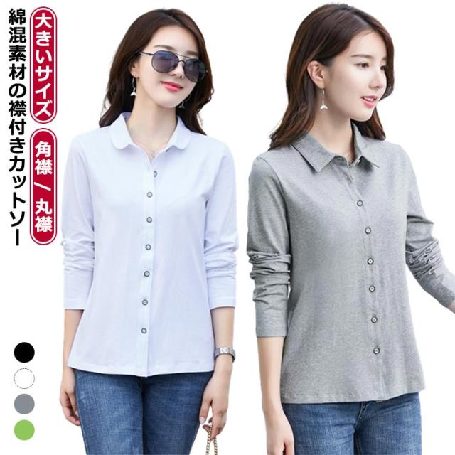 襟付き カットソー 長袖 シャツ 長袖カットソーレディース レディース 丸襟 レディース 長袖カットソー 長袖 長袖シャツ オフィスウエア 角襟 綿 レディース カットソー オフィス スリム カジュアル 通勤 春 秋