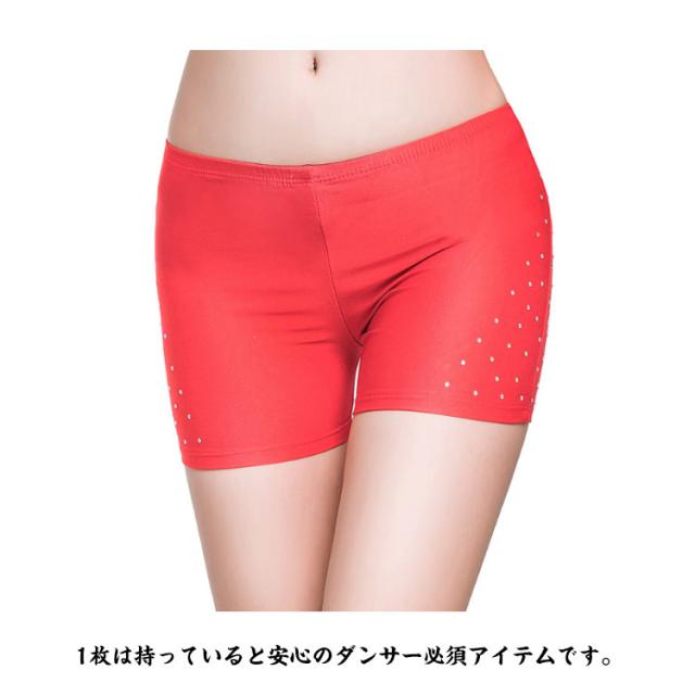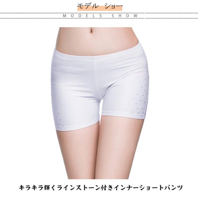 レディース ラインストーン付き インナーパンツ スパッツ 3分丈 透け防止 ベリーダンス 見せパンツ 女性 ショートパンツ レギンス ショート丈 ショートレギンス インナー アンダーウェア 下に履く カバーパンツ パンツ
