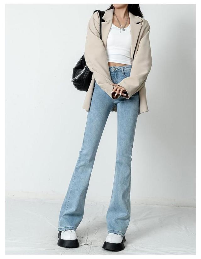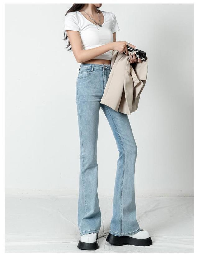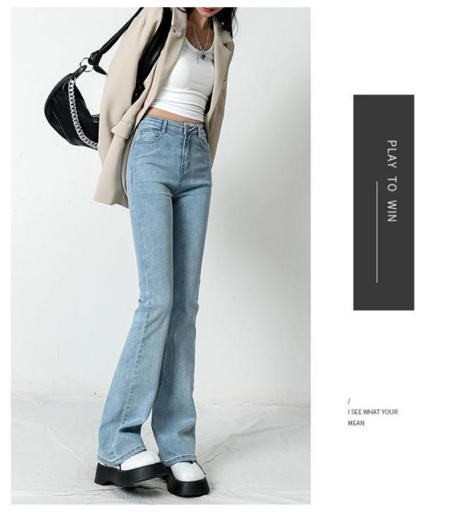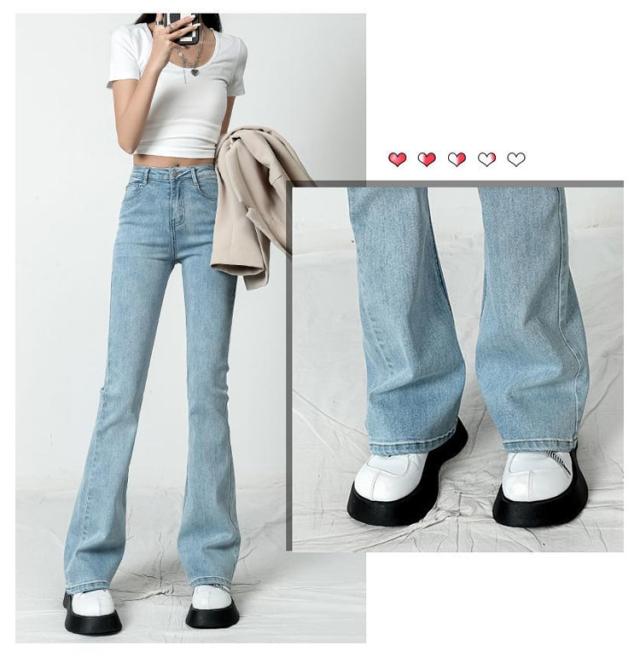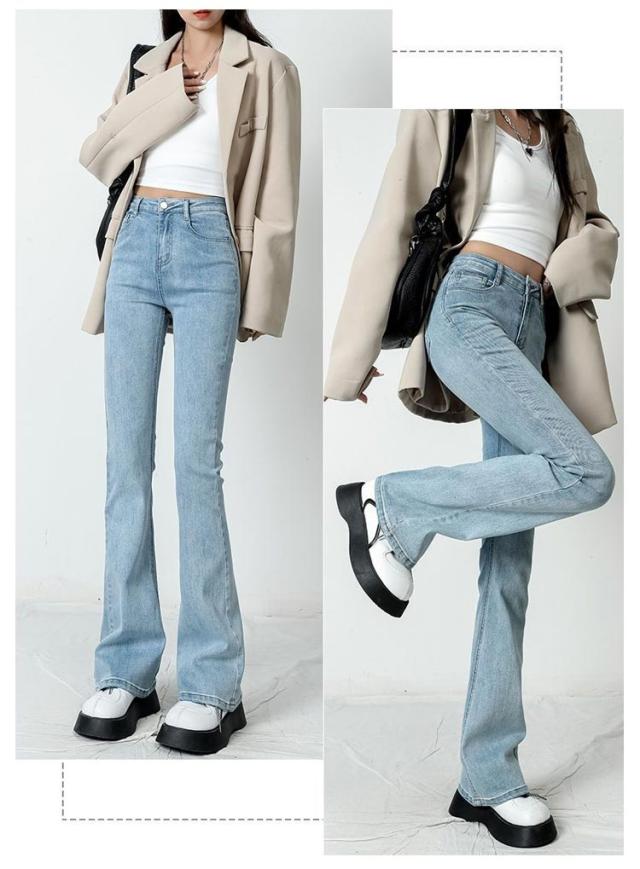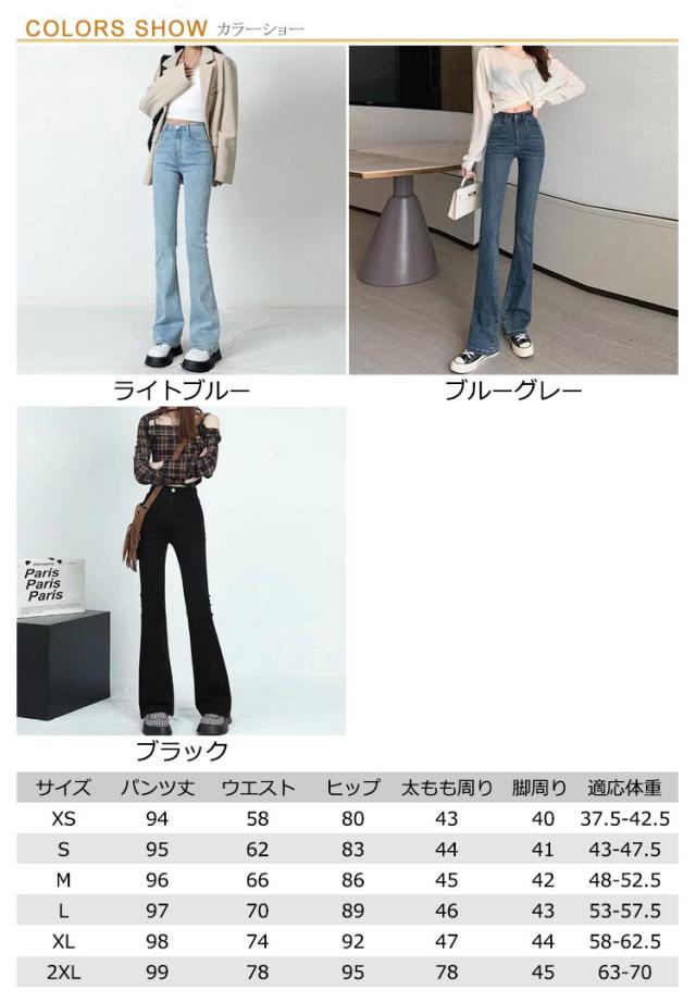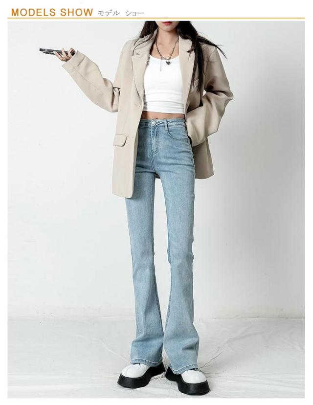 レディース デニム フレア 細身 ハイウエスト ハイウエスト パンツ スリム ジーンズ ジーパン ロング丈 ロングパンツ デニムパンツ ハイウエスト フレアデニムパンツ タイト フレア 春 夏 秋 冬 カジュアル ラフ韓国ファッション STYLE ライトブルー ブルーグレー