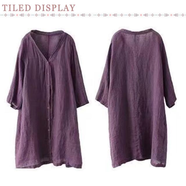 リネン ロングシャツ かや サマーコート ロング丈 リネン 薄手 綿麻 Vネック 羽織り ノーカラー アウター 蚊帳 長袖 UVケア 冷房対策 紫外線対策 体型カバー サマーアウター 夏 春 ポケット付き