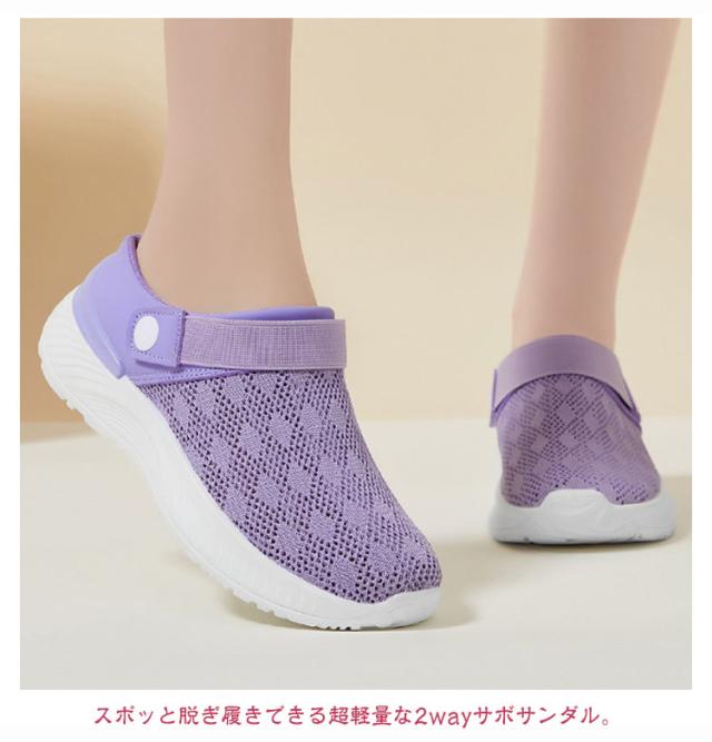 サボサンダル スニーカーサンダル 2way 可動式バックストラップ レディース メッシュサンダル 通気性 超軽量 軽い 仕事 スリッポン 2way 病院 靴 家事 シューズ スリッパ つっかけ 疲れにくい クッション