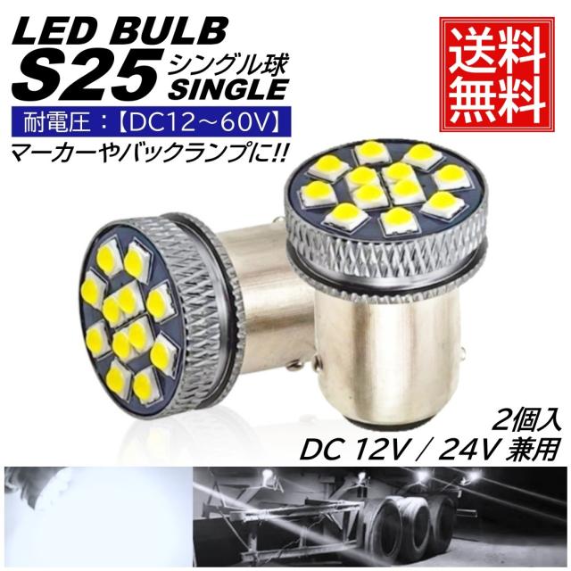 高輝度 S25 LED シングル 24V 12V ホワイト 無極性 バックランプ サイドマーカー マーカーランプ マーカー球 トラック 1156 BA15S