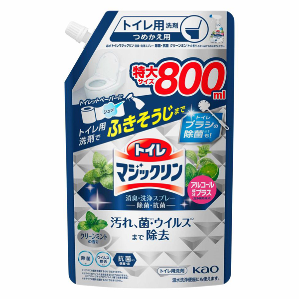[花王]トイレマジックリン 消臭・洗浄スプレー 除菌・抗菌 クリーンミントの香り つめかえ用 特大 800ml(詰替 トイレ用品 トイレ掃除 ・