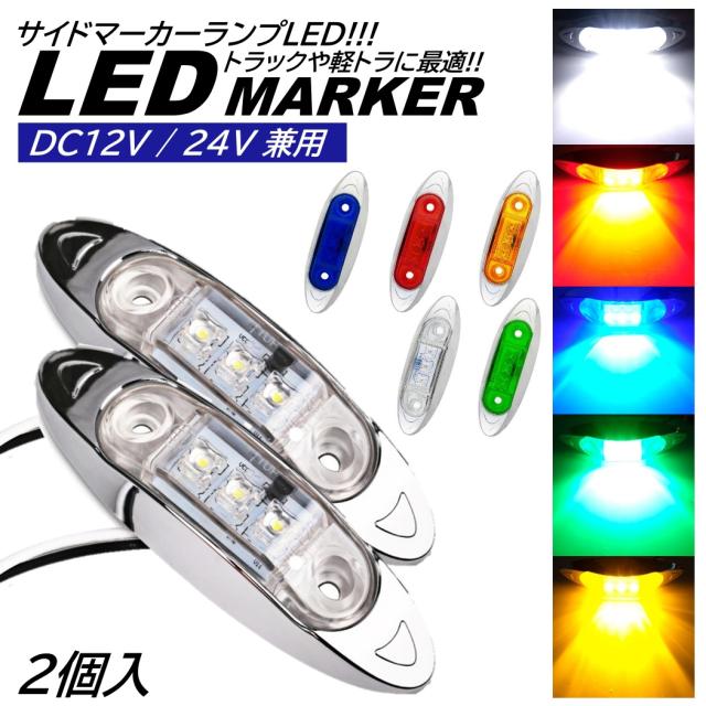 2個 LED サイドマーカー トラック マーカー 軽トラ 小型 DC12V DC24V 兼用 デコトラ ミニ マーカーランプ 汎用 車高灯 車幅灯