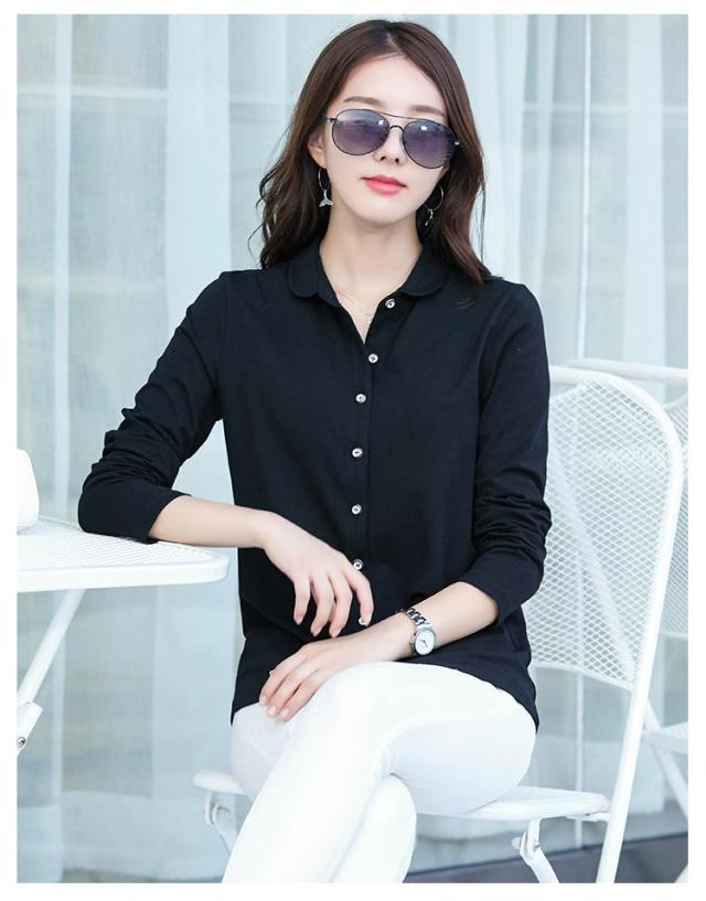 前開き カットソー 丸襟 長袖シャツ 長袖 オフィスウエア 長袖カットソー レディース 長袖カットソーレディース レディース 襟付き レディース 角襟 綿 秋 長袖 オフィス スリム カジュアル 通勤 春 シャツ