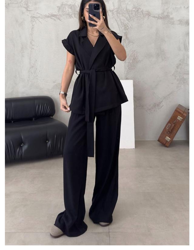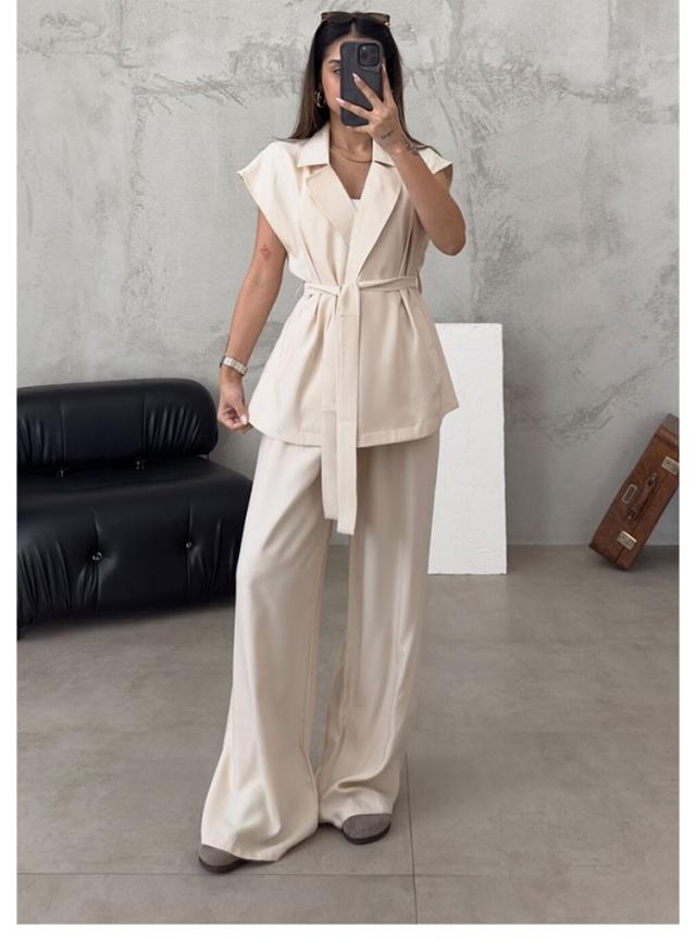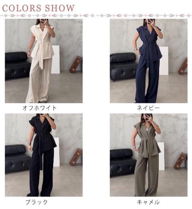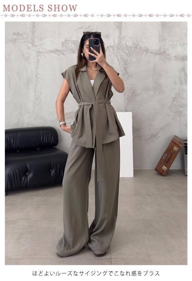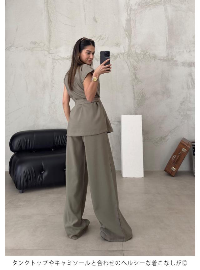 シャツジャケット フレンチスリーブ パンツスーツ ストレートパンツ 夏服 薄手 春夏 セットアップ ノースリーブ 長ズボン カジュアルスーツ テーラードジャケット 大きいサイズ レディース