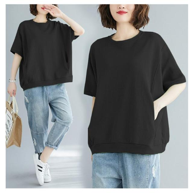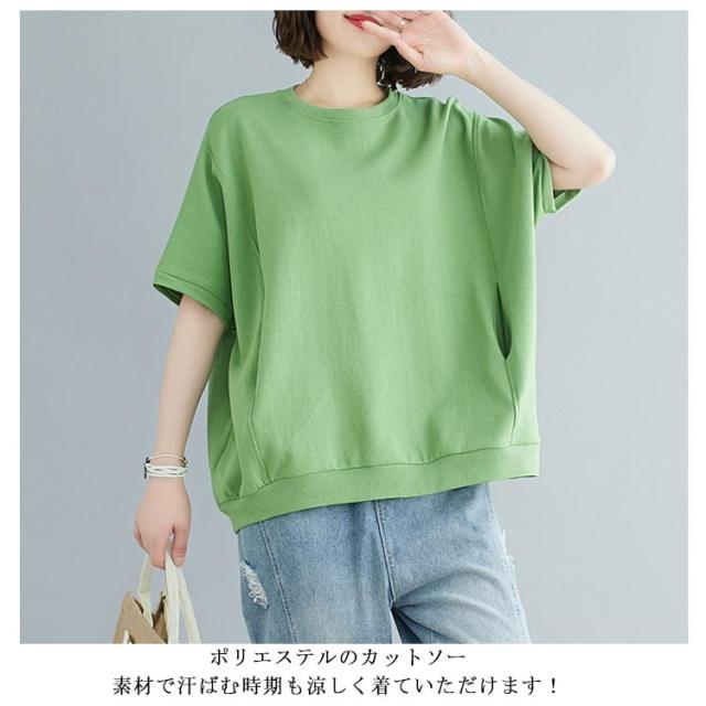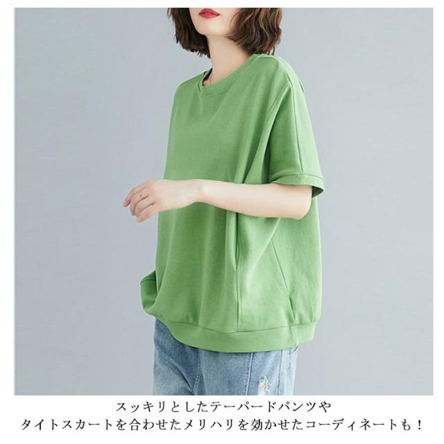 半袖 レディース おしゃれ 春 夏 トレーナー おしゃれ 大きいサイズ レディース トップス 5分丈 ビッグシルエット ロンt 大きめ 半袖tシャツ カジュアル プルオーバー シンプル Tシャツ ラウンドネック カットソー 無地 ゆったり 体型カバー 夏服 tシャツ