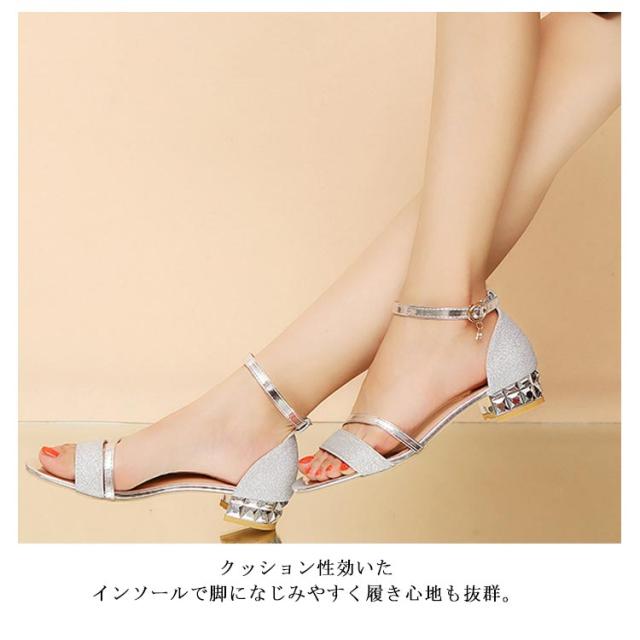 トレンド サンダル 通勤 太ヒール 疲れない サンダル 夏 ローヒール オープントゥ ストラップサンダル 美脚 歩きやすい レディース トレンド キラキラ 普段使い 痛くない 結婚式 パーティー シルバー ゴールド チャンキーヒール