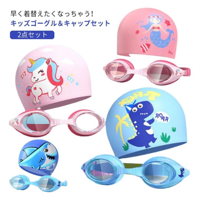 キッズ ゴーグル 2点セット 曇り止め 動物 子供用ゴーグル 水中眼鏡 帽子 子供用 子供 スイムキャップ ジュニア 男の子 キッズ スイミングゴーグル 女の子 かわいい キャラクター スイムゴーグル 水泳帽 アニマル 水泳 水中メガネ UVカット スイムゴーグル