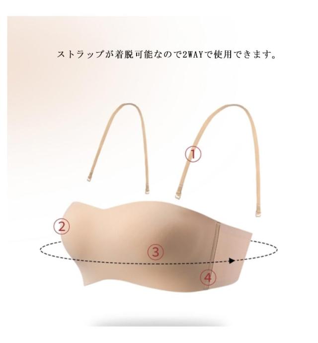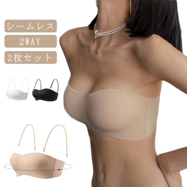 2way ノンワイヤーブラ ずれない ストラップレスブラ 紐なしブラ 育乳ブラ チューブトップ シームレス ブラ 落ちない ストラップレス ブラジャー 小胸 ベアトップ 肩紐なし ドレスインナー ベアトップ 谷間 2枚セット