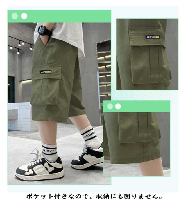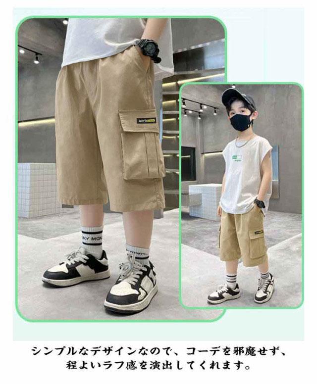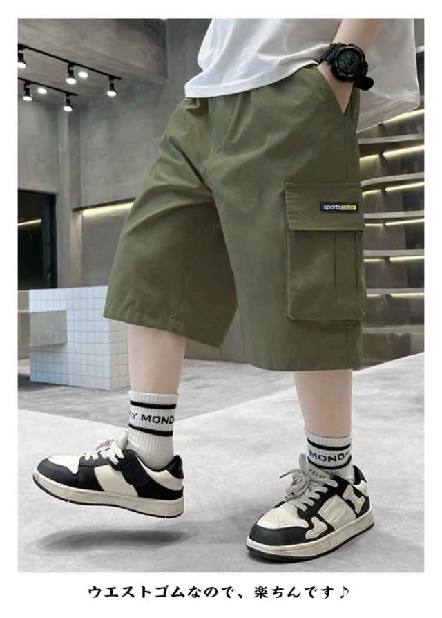 ボトムス 男の子 ジュニア 7分丈 カジュアル 120 キッズ カーゴパンツ 子供服 七分丈 夏 半ズボン イージーパンツ 小学生 おしゃれ 薄手 パンツ ウエストゴム 子ども 幼稚園 小学校 公園 散歩 おしゃれ 130 140 150 ハーフパンツ