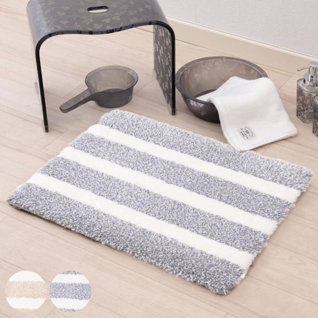 バスマット デュアルボーダー 45×60cm ( お風呂マット 足拭きマット 吸水 速乾 ボーダー シャリ感 すべり止め 洗濯OK 浴室マット 45×60 滑り止め ふんわり ベージュ グレー )