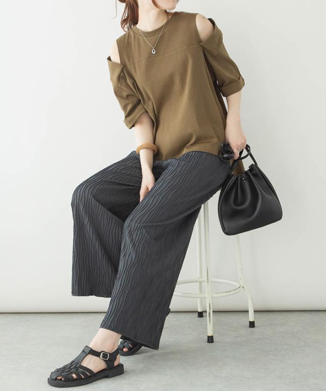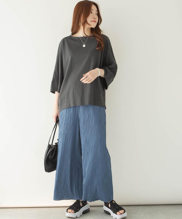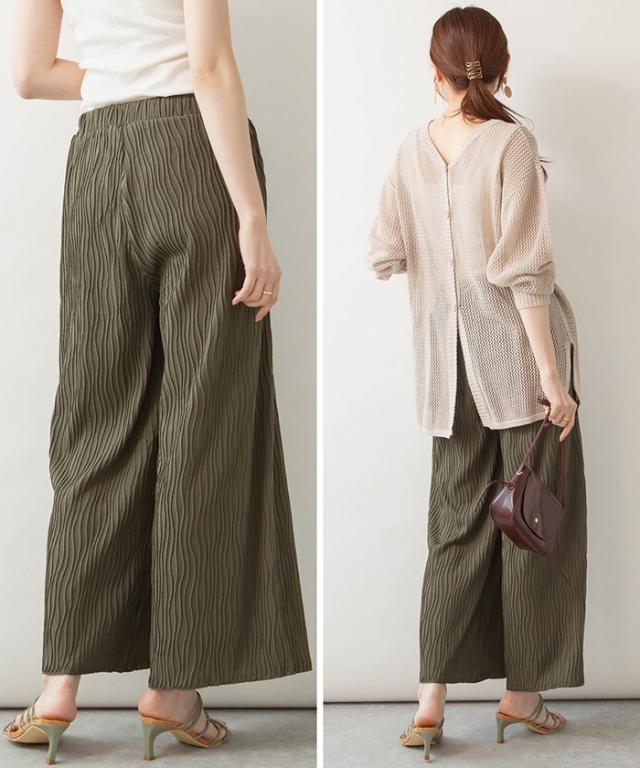 | 快適さとスタイルを兼ね備えたワイドパンツです。独特のリップルストライプデザインが、個性的ながらも洗練された印象を演出します。カジュアルなルックスからちょっとした外出着まで、幅広いシーンで活躍する一着です。ワイド幅で脚のラインを拾わないでトレンドのシルエットに仕上げてくれる優秀ボトム。これからの季節にぴったりな丈感で、リネントップスやシフォン素材のブラウスなど相性抜群!カジュアルに着こなすなら、ビッグシルエットのTシャツやロンT、パーカーやスウェットトレーナーと合わせても◎足元は、パンプスやローファー、スニーカー合わせでカジュアルスタイルも簡単にきまり、コーデの幅も広がります♪綺麗目なスタイリングから、カジュアルなスタイリングまでトップスによって表情を変えてくれる活躍間違い無しのボトムスです。軽やかで通気性に優れた素材を採用しており、長時間の着用でも快適性が保たれます。 |