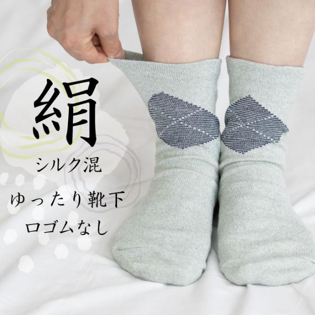 メール便2足まで シルク混 口ゴムなし ゆったり ソックス 絹 締め付けない 楽ちん靴下 シニアタイプ ショートソックス 色おまかせ LegStyle