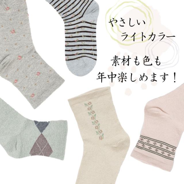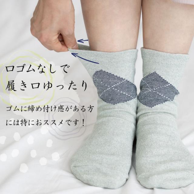 | 特長 | 履き口がゆったりしているので、ゴム跡が気になる方や、シニアの方におすすめです。夏は足のムレ防止に・冬は冷え性の対策と年間を通してご愛用いただけます♪ |