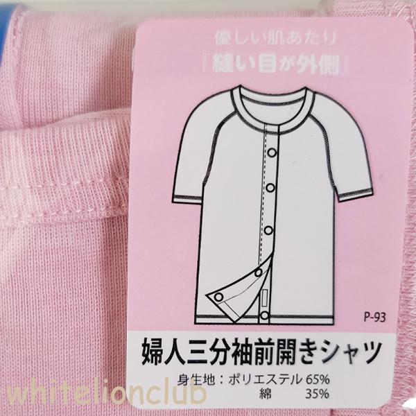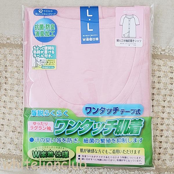 【アウトレット】ワンタッチ肌着 婦人用 3分袖 前開きシャツ ワンタッチテープ式 ラグラン袖 抗菌 防臭 消臭 L