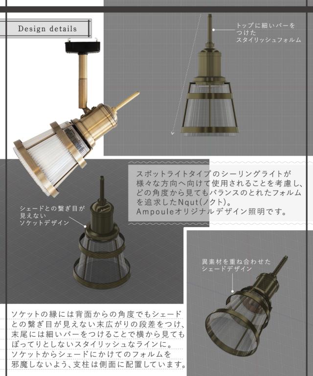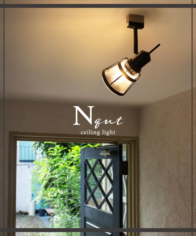 【Ampoule】シーリングライト 照明 おしゃれ 1灯 スポットライト ライト E17 ガラス 玄関 廊下 トイレ 洗面所 リビング ダイニング 寝室 間接照明 ライティング レトロ モダン シンプル アンティーク インダストリアル ゴールド ブラック 金 黒 照明器具 Nqut ノクト 1C