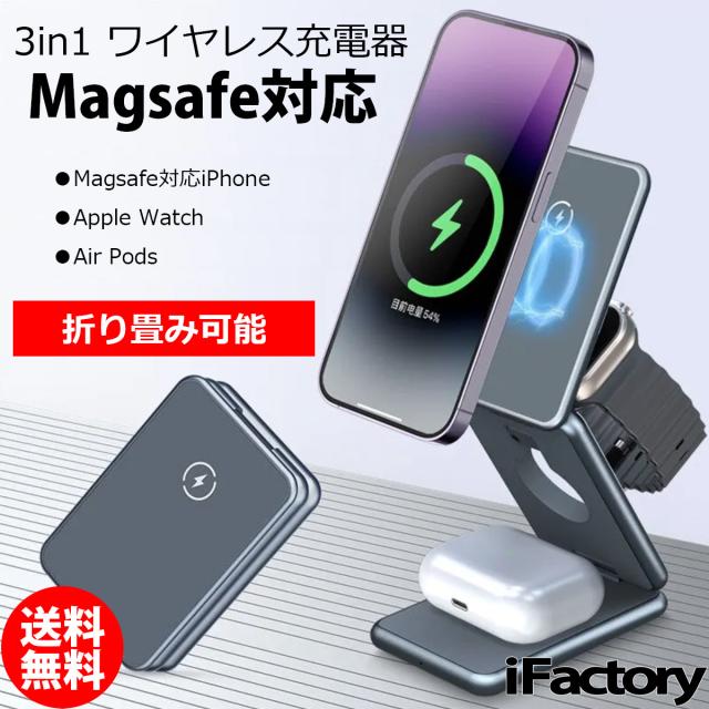 3in1 Magsafe ワイヤレス充電器 折りたたみ可能 iPhone AppleWatch AirPods Android