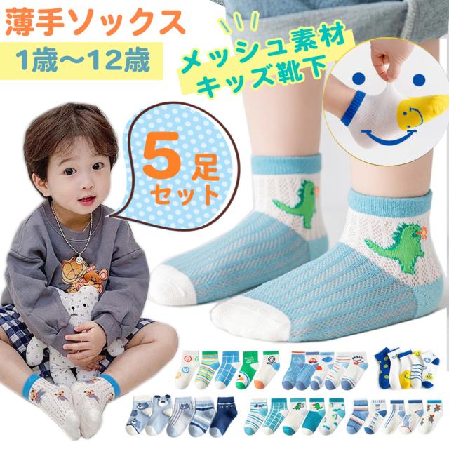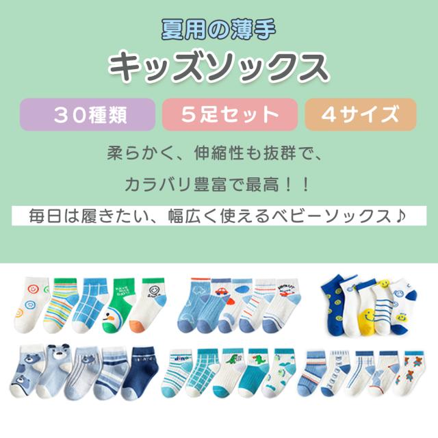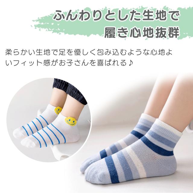 靴下 キッズ 薄手通気性 子供 靴下ショートくつした ソックス キッズ 涼しい 蒸れにくい 小学生 保育園 幼稚園 内祝い 運動会スポーツ キッズ服・ベビー服 子ども 男の子 5足セット