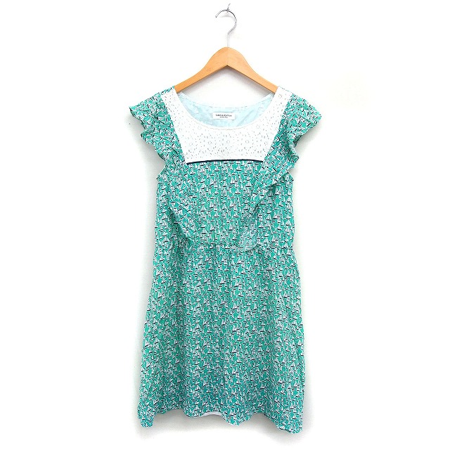 【中古】リミテッドエディション LIMITED EDITION VIVAYOU ヨット柄 フレア ワンピース ミニ レース フリル M グリーン