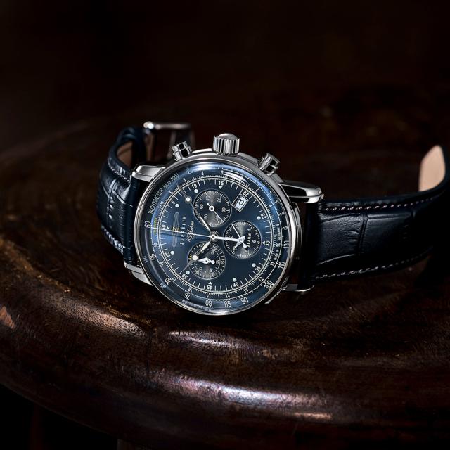 ツェッペリン 100周年記念シリーズ ブルーツェッペリン 7680-3N メンズ 腕時計 電池式 クオーツ クロノグラフ 革ベルト