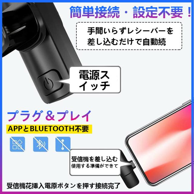 【APP不要,Bluetooth不要,操作簡単】最新の技術で、送信機と受信機が自動的に無線接続されます。APPやBluetoothは必要なく、受信機をデバイスに挿すだけですぐに使えます。