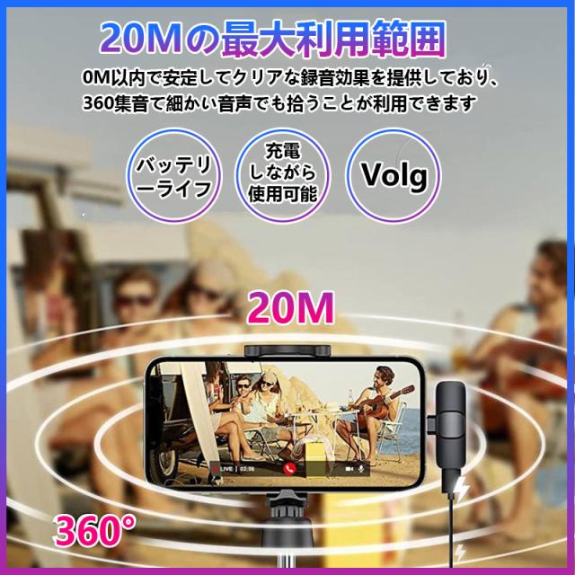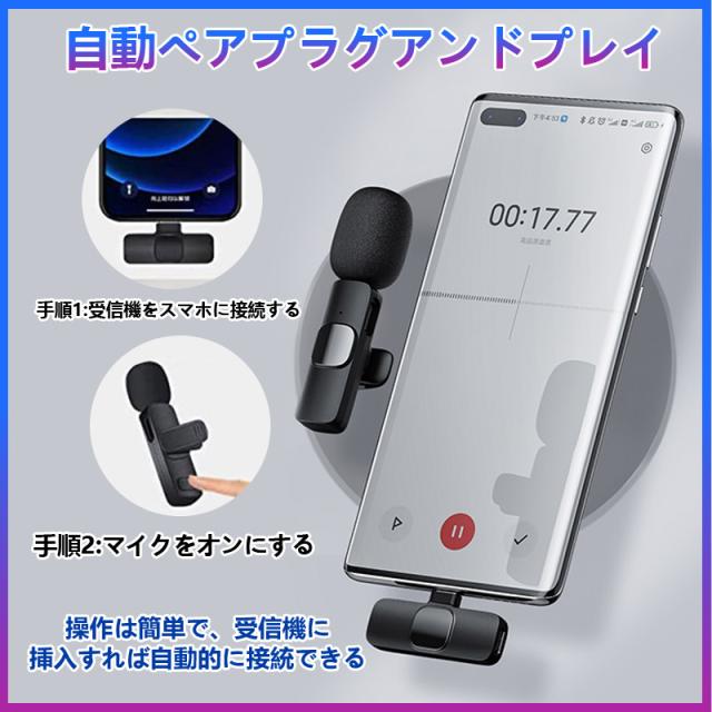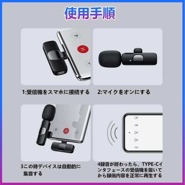 短納期!ピンマイク ワイヤレス Type-Cポート用 スマホピンマイク 瞬時接続 360°集音 ノイズ軽減 Vlog撮影/動画配信/生放送等対応 APP不要 送料無料