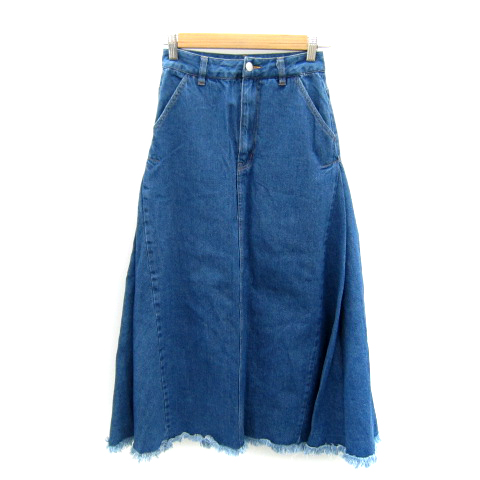 【中古】ロイヤルパーティー デニムスカート フレアスカート ロング丈 マキシ丈 フリンジ M 青 ブルー レディース