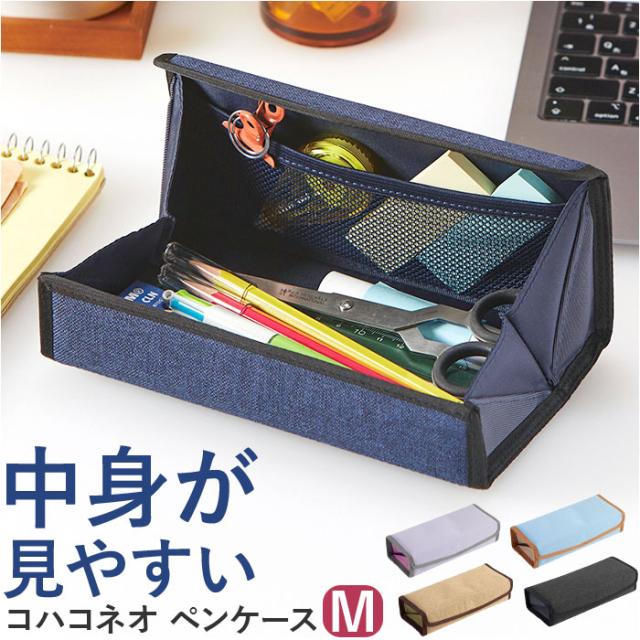 | 商品説明 | 【大きく開いて中の文具が見やすい】 ・フタをパカッと開くと、コンパクトなボックス形状に変身!「コハコネオ ペンケースMサイズ」 【片手で開け閉めがスムーズ】 ・開口部のフラップに隠しマグネットを内蔵し、片手で軽く触れるだけで開け閉めがスムーズ。 【“小箱”みたいに文具が一目瞭然】 ・フタを開けると、小箱のように開いた状態をキープ。お目当ての文房具がサッと取り出て便利! 【大きめ文具もすっぽり入る!】 ・ペンやえんぴつはもちろん、ハサミや修正テープなど大きめの文具も一緒に収納できるサイズ感。 【小物を見せてオシャレに収納】 ・フラップ裏のメッシュポケットには、カラフルな付箋紙やクリップで、魅せる収納も楽しめる♪ 【こんな使い方もオススメ】 ・広げたペンケースのフラップにスマホを立て掛ければ、デスクではスマホスタンドとしても活躍! 【使い方はアイディア次第】 ・小ぶりに見えて収納力抜群!リップやコンパクトをしまってママさんのコスメポーチにしてもOK♪ 【オフィスでもお洒落に映える】 ・深みのあるキャンバスやパステル調リップストップ生地を鮮やかに縁取ったバイカラーデザイン。 |