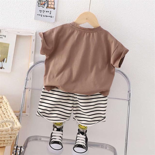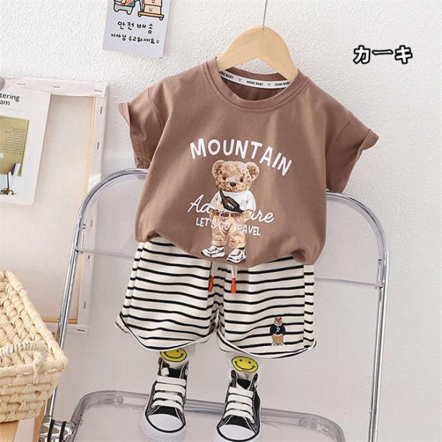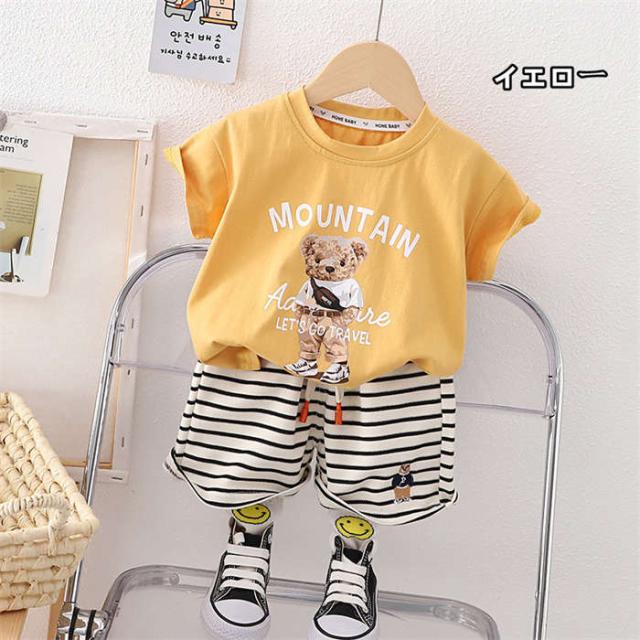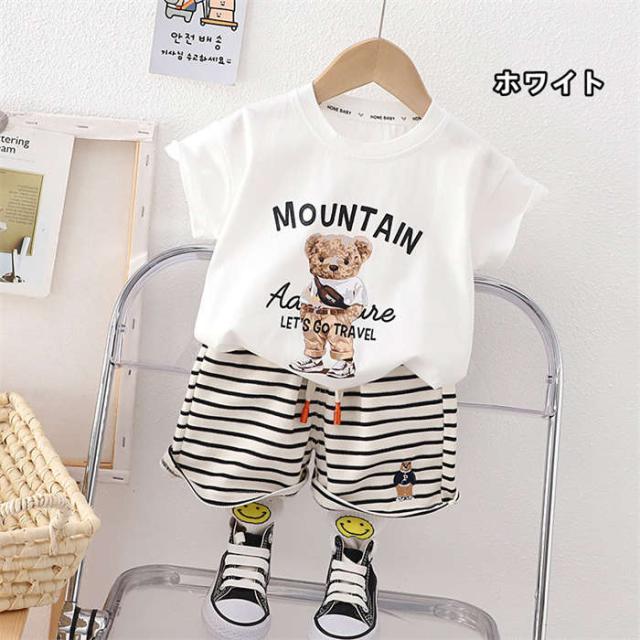 ベビー服 セットアップ 男の子 女の子 Tシャツ ショートパンツ 短ズボン 短パン 半袖 キッズ上下セット 夏服 くま ストライプ柄 子供服