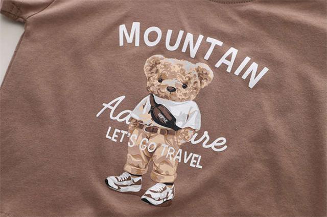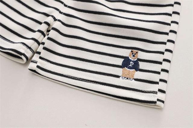 商品名:ベビー服 セットアップ 男の子 女の子 Tシャツ ショートパンツ 短ズボン 短パン 半袖 キッズ上下セット 夏服 くま ストライプ柄 子供服 カジュアル パンツ カジュアル ジュニア 普段着 運動着 スポーツウェア 80cm 90cm 100cm 110cm 120cm