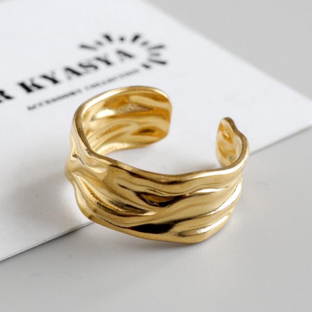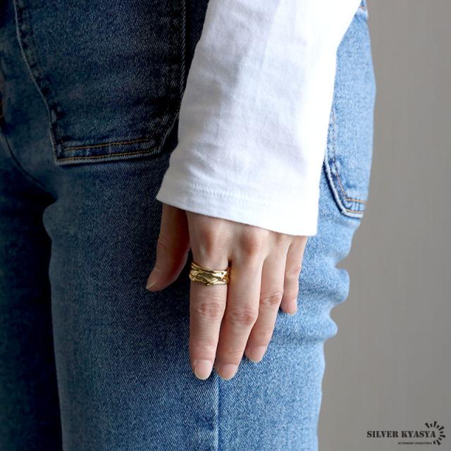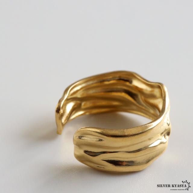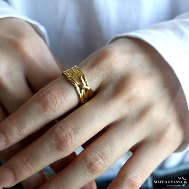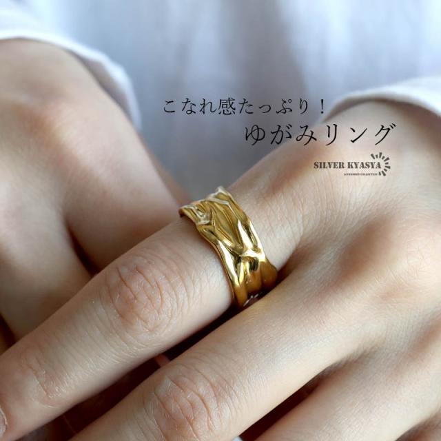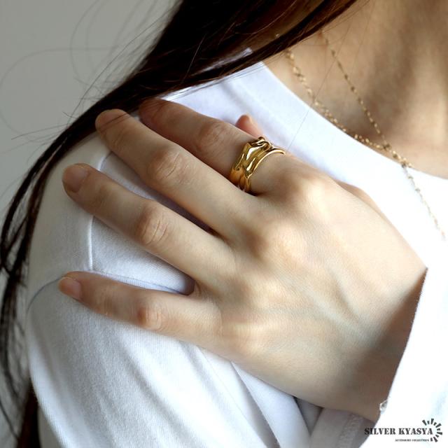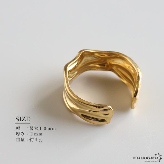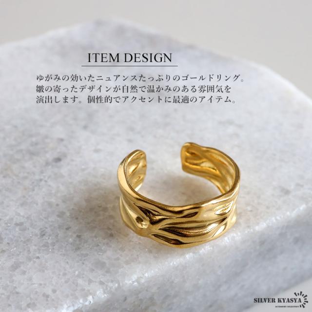 ゆがみリング ニュアンスリング ゴールドリング 指輪 18KGP ゴールド ステンレス しわ ギャザー レディース フリーサイズ 金属アレルギー対応