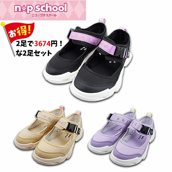 2足セットで3674円!! ニコプチスクール 047 スニーカーサンダル 黒マルチ/ナチュラル/パープル 全3色 女子小学生 オシャレ 通学靴 かわいいサンダル