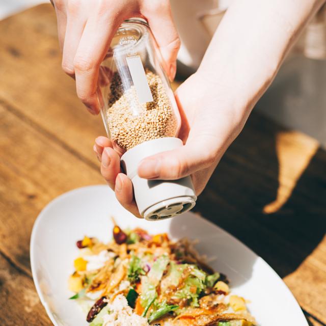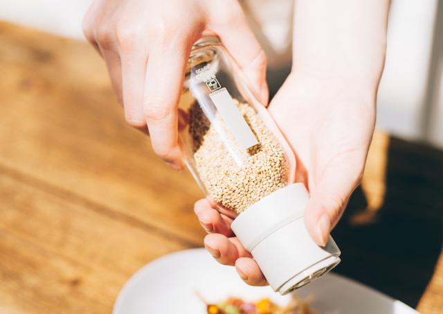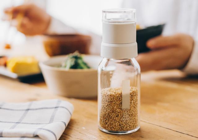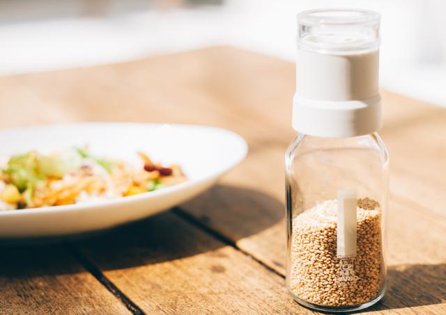 挽いた調味料をフタに溜められるので、使用する量を確認できます。フタを付けることで、ゴマを挽いた時の飛び散りを防げるのも嬉しいポイントです。