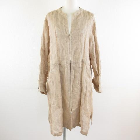 【中古】ジュノー JUNO ノーカラーリネンジャケット 長袖 ロング ジップアップ ベージュ 40 *T545 レディース