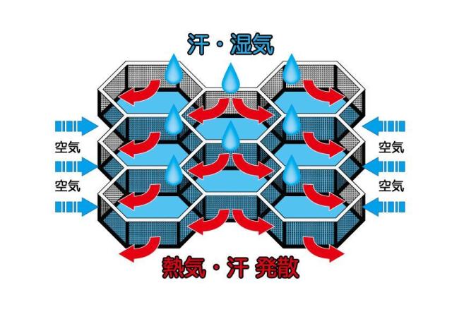 さらに表地に溜った熱や湿気も三次元ダブルラッセル構造だからすばやく発散。