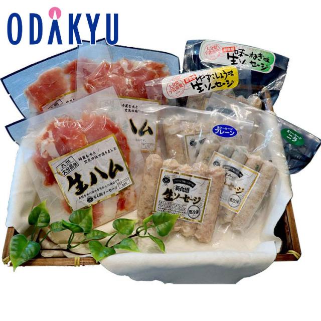内容:・錦雲豚生ハム切り落とし100g×3P、生ソーセージ(プレーン・ニラ・ゆずこしょう・味一ねぎ)各100g×各1P