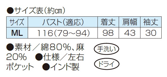 ●素材/綿80%、麻20%