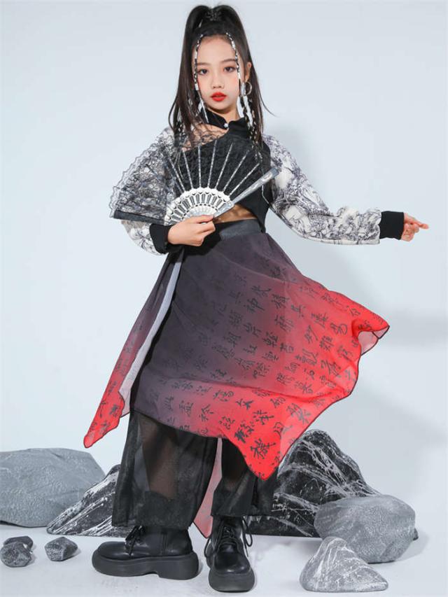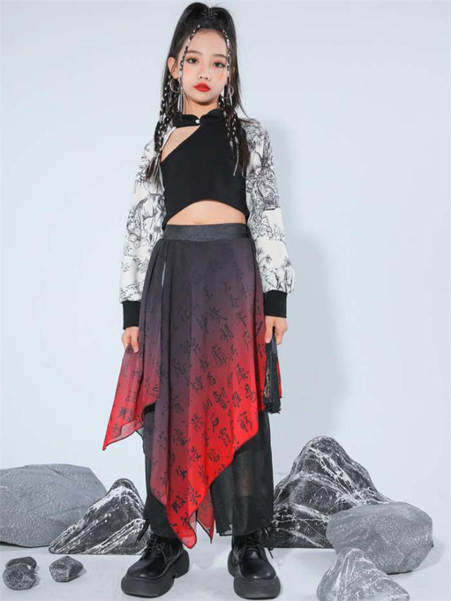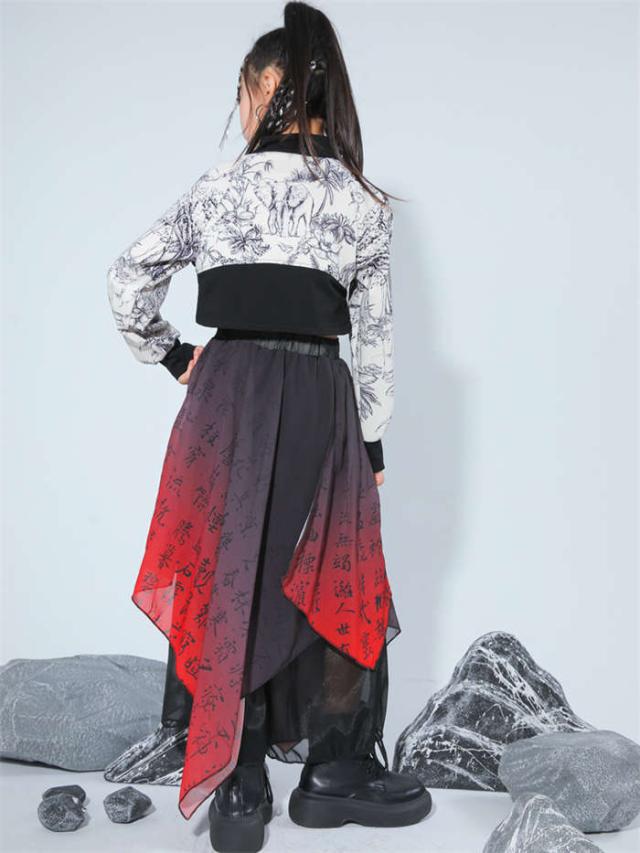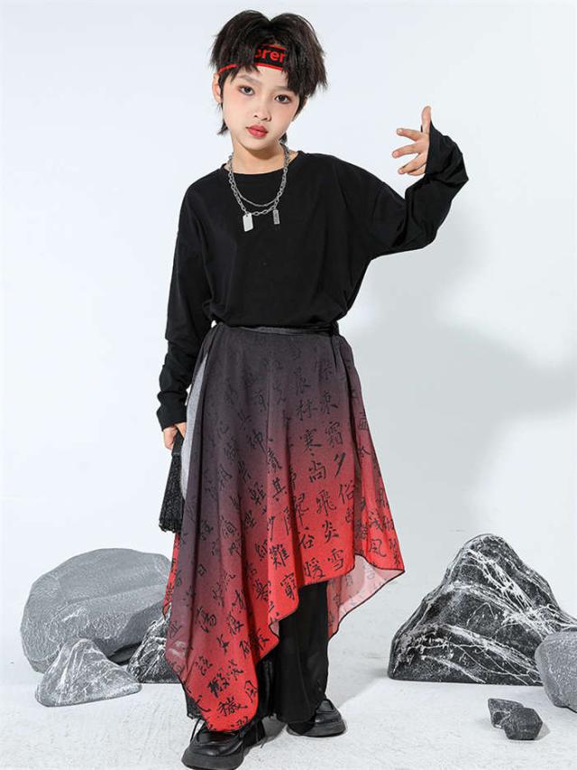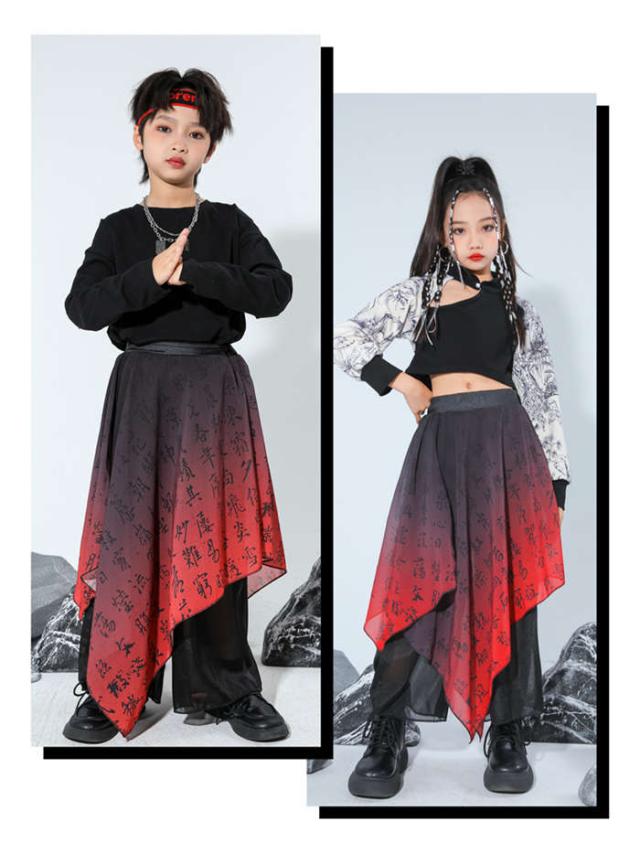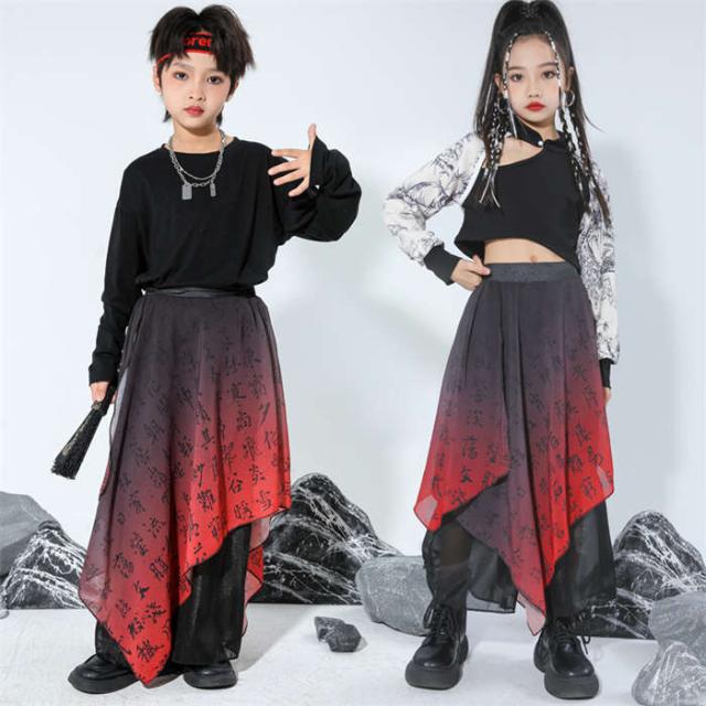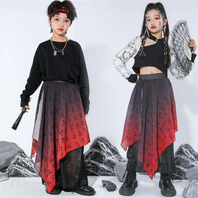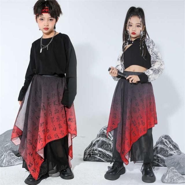 商品名:キッズダンス衣装 中華風 ダンスウエア 女の子 男の子 ダンス服 ダンス着 へそ出しトップス ゆったり パンツ セットアップ 赤 黒 和風 レッド 黒 k-pop HIPHOP ジャズダンス チアダンス ガールズ かっこいい 演出服 応援団 ステージ衣装 団体服 発表会 運動会 110-170cm