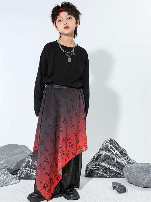 キッズダンス衣装 中華風 ダンスウエア 女の子 男の子 ダンス服 ダンス着 へそ出しトップス ゆったり パンツ セットアップ 赤 黒 和風