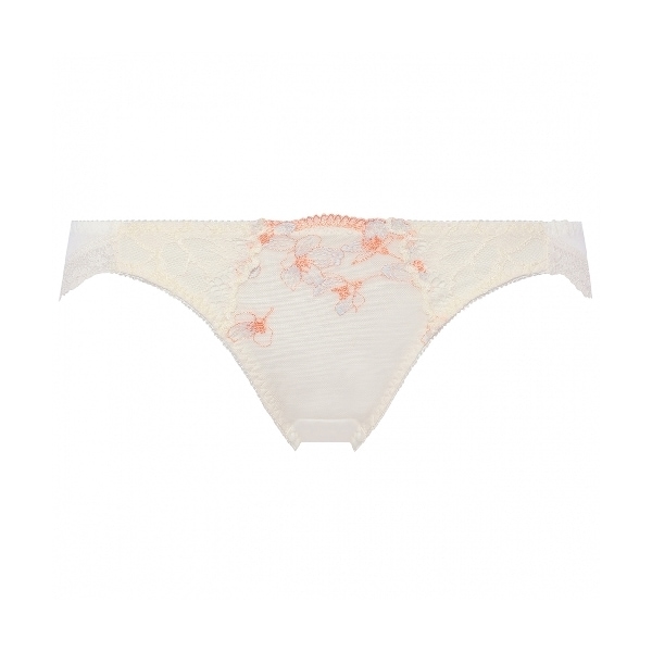 軽やかに咲く、線画タッチの小花のエンブロイダリーレースに透け感のある編みレースをサイドから組み合わせた大人カワイイデザイン。