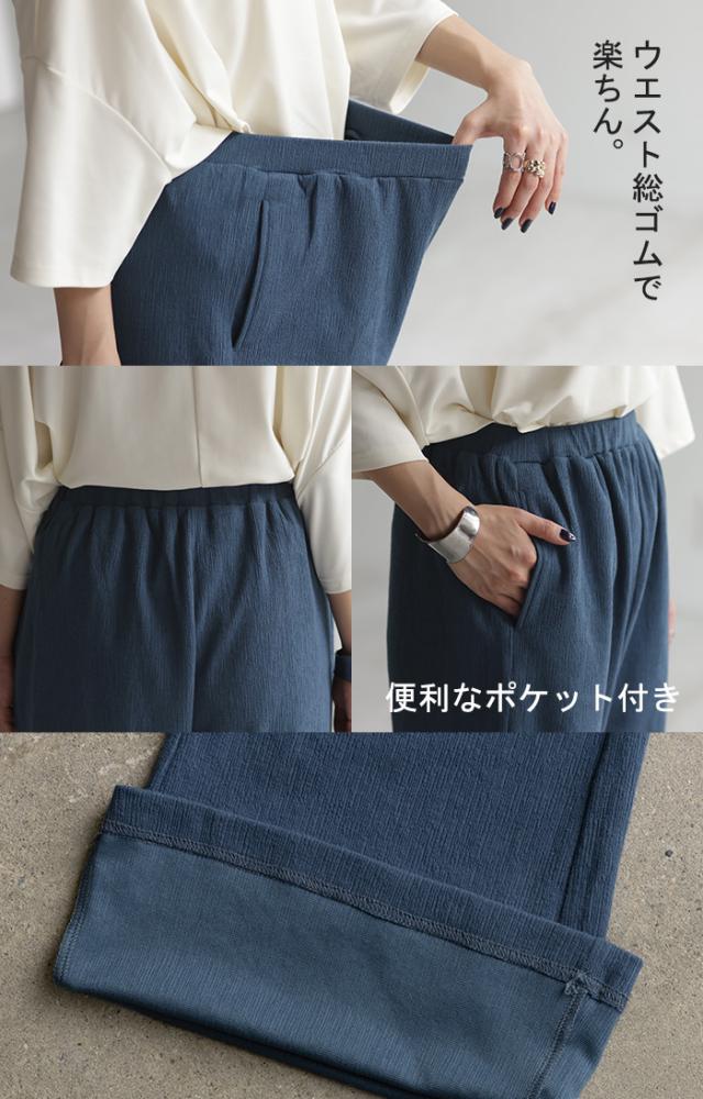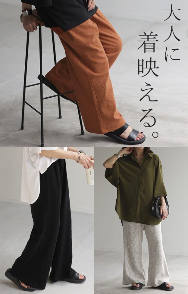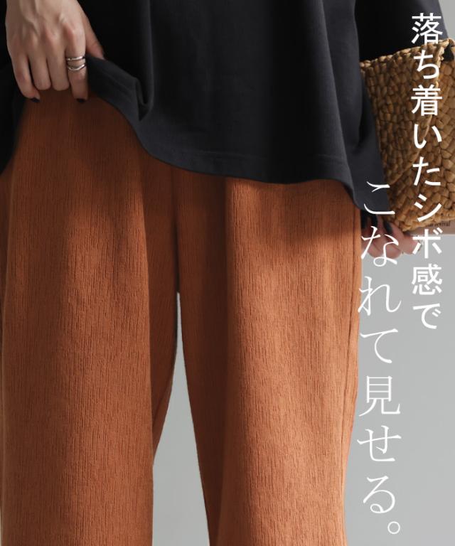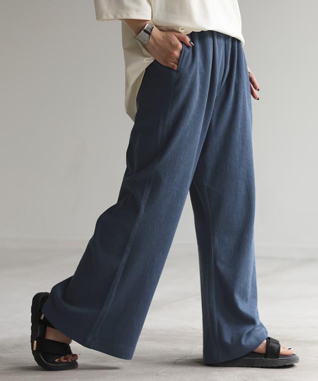 生地の風合いが抜け感とニュアンスたっぷりなワイドリブパンツです。