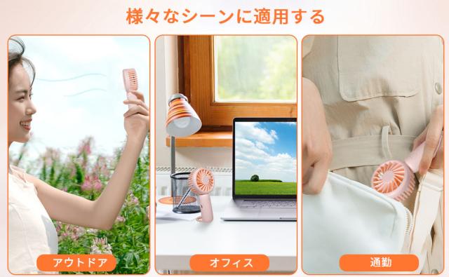 【超軽量&携帯便利】製品の重量はわずか77gで、スマートフォンよりも軽量であり、コンパクトな設計が特長です。バッグに入れて持ち運ぶことが容易で、外出時も快適です。この製品は、ハンディファンとしても、ミニ扇風機としても、また携帯扇風機としても使用可能です。
