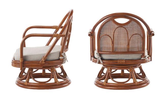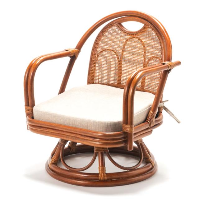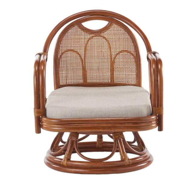 椅子 ラタン チェア 肘掛け付き ラタン回転椅子ミドル 籐 天然素材 丈夫 しなやか 通気性 年中快適 回転チェア 軽量 クッション付き 滑り止め 和風 和室 ゆったり リラックス(代引不可)【送料無料】