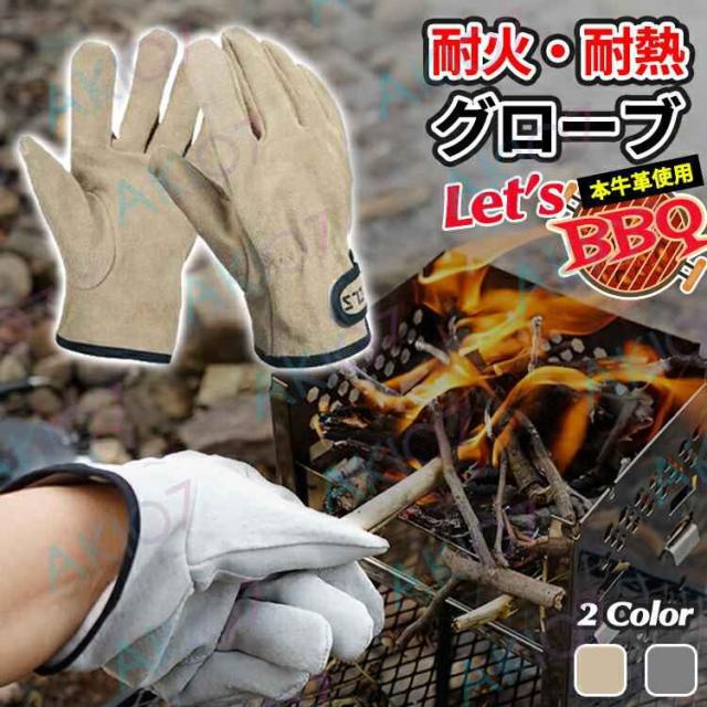 【2セット】耐熱グローブ 耐熱 耐火 手袋 焚き火 キャンプ グローブ やわらかい おしゃれ レザー 革手袋 アウトドア 牛革 焚火 バーベキュー キャンプ用品